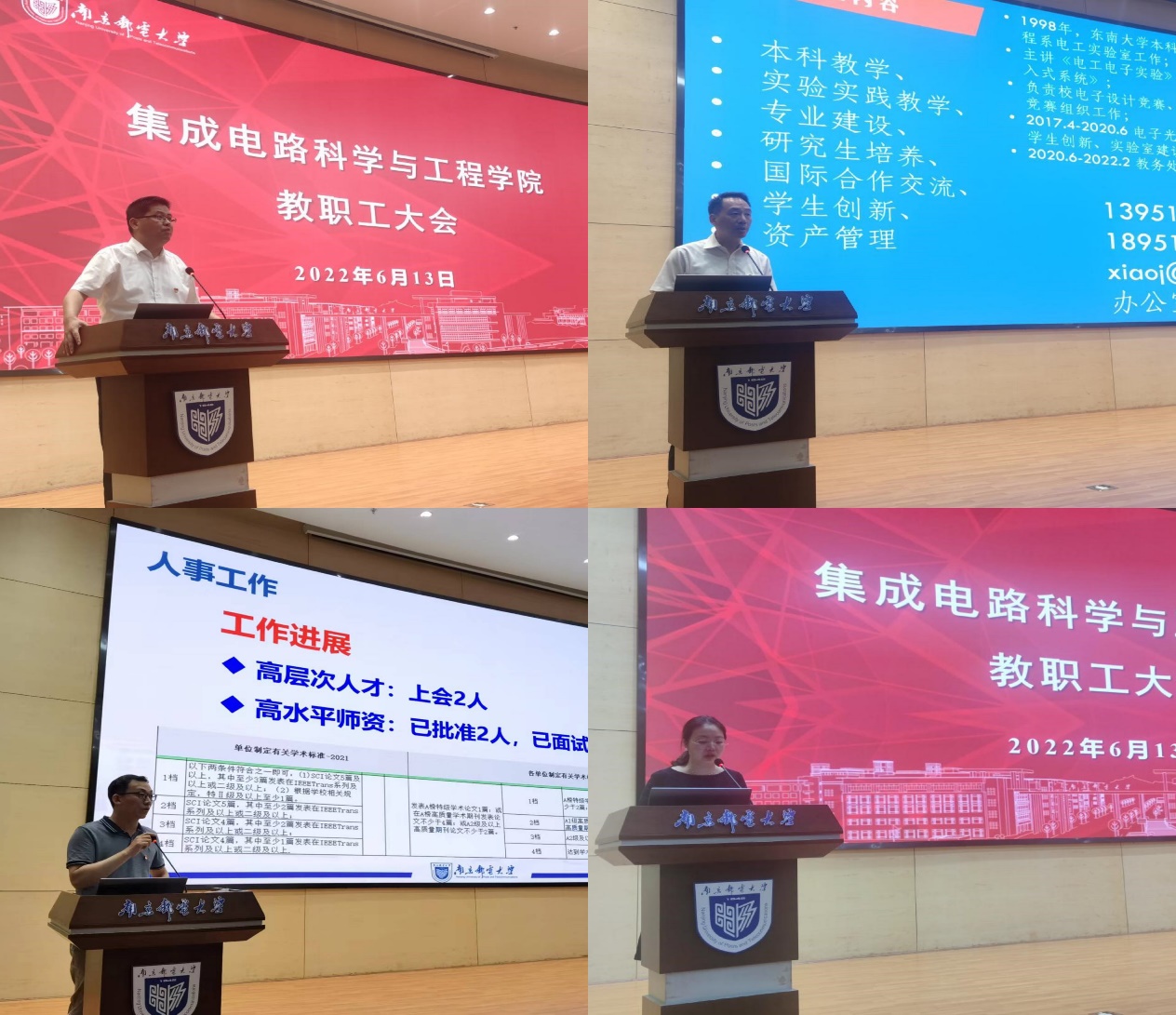 6月13日下午,腐漫 在仙林校区图书馆四楼报告厅召开教职工大会。会议由学院党委书记高翔主持,学院党委副书记、副院长乔祖琴、副院长肖建、蔡志匡就分管工作进行总结和部署,全体教职工参加了会议。