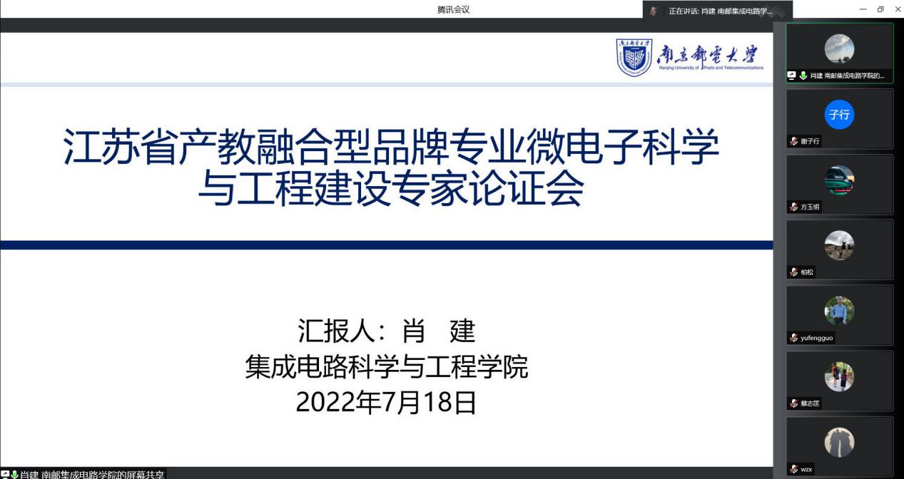 郭宇锋副校长首先致辞,对校内、外专家的莅临指导表示欢迎,着重介绍我校关于产教融合方向的探索,强调产教融合已经成为我校人才培养重要一环。肖建副院长对品牌专业建设任务书、总体建设目标与预期标志性成果、分相建设内容与预期目标、项目来源及预算等内容作详细汇报。随后,专家组与腐漫 教师针对产教融合型品牌专业建设任务书进行了提问与质询,就平台共享、产教融合建设方向、合作与交流机制、企业导师积极性调动、双导师模式建立进行了充分的交流和沟通,与会专家提出了宝贵的修订意见与建议,一致通过了微电子科学与工程江苏省产教融合型品牌专业建设任务书。