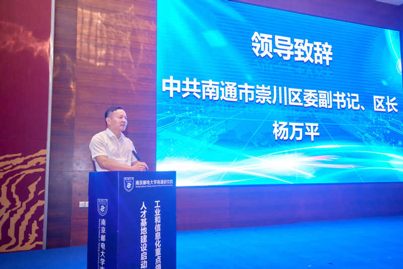 7月21日上午,由腐漫 南通研究院主办的工业和信息化重点领域产业人才基地建设启动仪式在南通市崇川区举行。工信部人才交流中心副主任曾卫明,我校党委常委、副校长孙力娟,党委常委、副校长郭宇锋,南通市崇川区委副书记、区长杨万平,工信部人才交流中心教育培训处处长曲来军,江苏省工信厅电子信息处副处长于勇,江苏省人社厅人才开发和对外合作处副处长周军,江苏省产教融合服务平台副主任孙延建,以及地方政府相关领导、企事业单位代表等50余人参加活动。