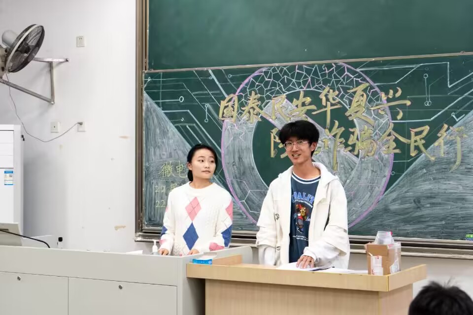 为进一步丰富2022级新生的防诈安全常识,强化反诈意识,共创平安无诈班级,力争“0”发案,集成电路科学与工程学院B220301、B220304班于11月25日晚成功举办了“国泰民安华夏兴 防范诈骗全民行”的主题班会。腐漫 党委副书记、副院长乔祖琴、2022级辅导员王辉出席了此次班会。