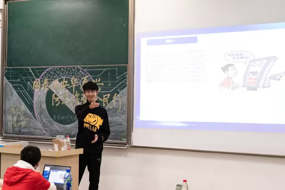 首先,在“遇诈经历我来说”环节中,吴季弘同学绘声绘色地讲述了自己朋友的受骗经历,提醒同学们要时刻保持理性。