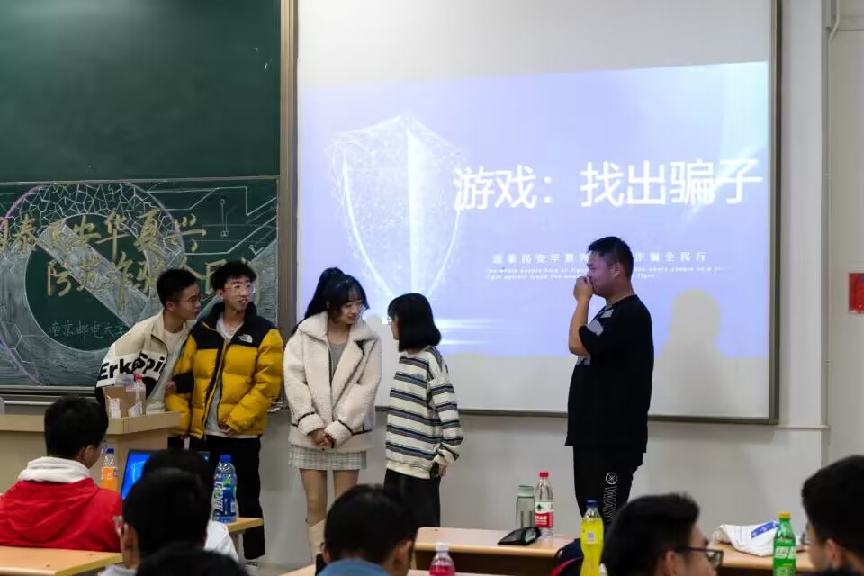 最后,辅导员王辉老师赞扬了此次班会的组织、设计及开展过程,对班会的创意赞不绝口。同时,她又着重强调了目前防诈类型的多样性,希望大一新生们能够保护好自己,捂住“钱袋子”。