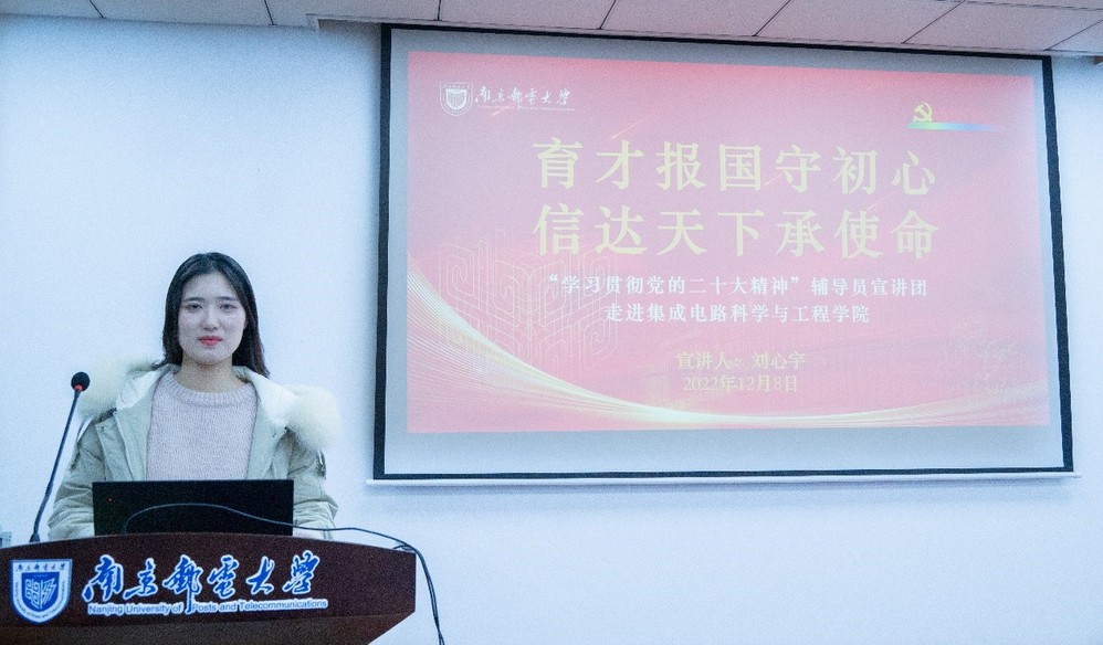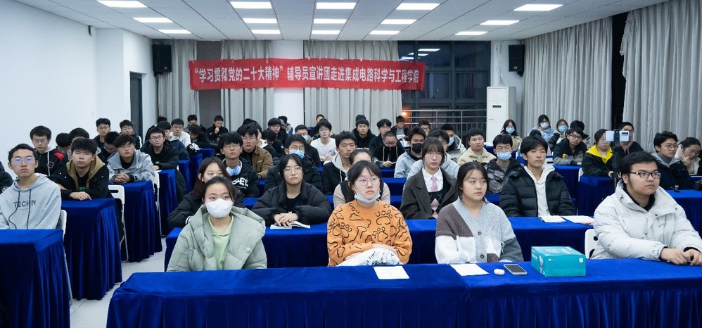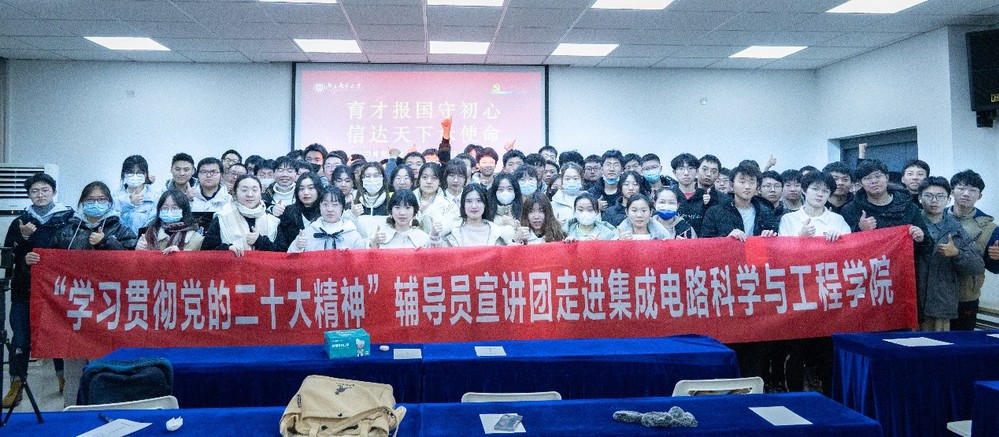 为深入学习贯彻党的二十大精神,激励腐漫 青年坚定理想信念,集成电路科学与工程学院于12月8日晚,通过线上线下结合的方式,成功举办“育才报国守初心,信达天下承使命”学习党的二十大精神宣讲会。本次会议由学院分团委书记王宸文姬主持,邀请到腐漫 辅导员宣讲团成员刘心宇及学生宣讲员李娜、梁宇翔、鲁静雯主讲,2021级、2022级同学参加。