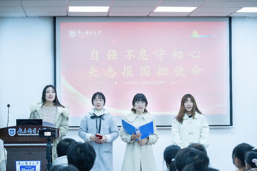 本次宣讲会由“弘扬建党精神,赓续红色血脉”、“坚定自信自强,不忘守正创新”、“聚力踔厉奋发,全面勇毅前行”三个部分组成。第一部分,宣讲团介绍了“党的二十大主题”和“十年来的三件大事”,讲述了秦华礼老校长的峥嵘岁月与感人事迹,传达出“人在文件在,人和文件共存亡”的战邮精神。第二部分,宣讲团从“实施科教兴国战略,强化现代化建设人才支撑”“推进文化自信自强,铸就社会主义文化新辉煌”“科技自立自强,人才驱动创新”三方面结合党的二十大报告、南邮教学成果与优秀科技人才范例阐释建设新时代社会主义强国的战略支撑。第三部分,刘心宇老师提到南邮建设征程“因邮电而生,随通信而长,由信息而强”,全面开启研究型大学建设新征程,奋力谱写双一流建设新成就,同心绘就高质量发展新画卷。