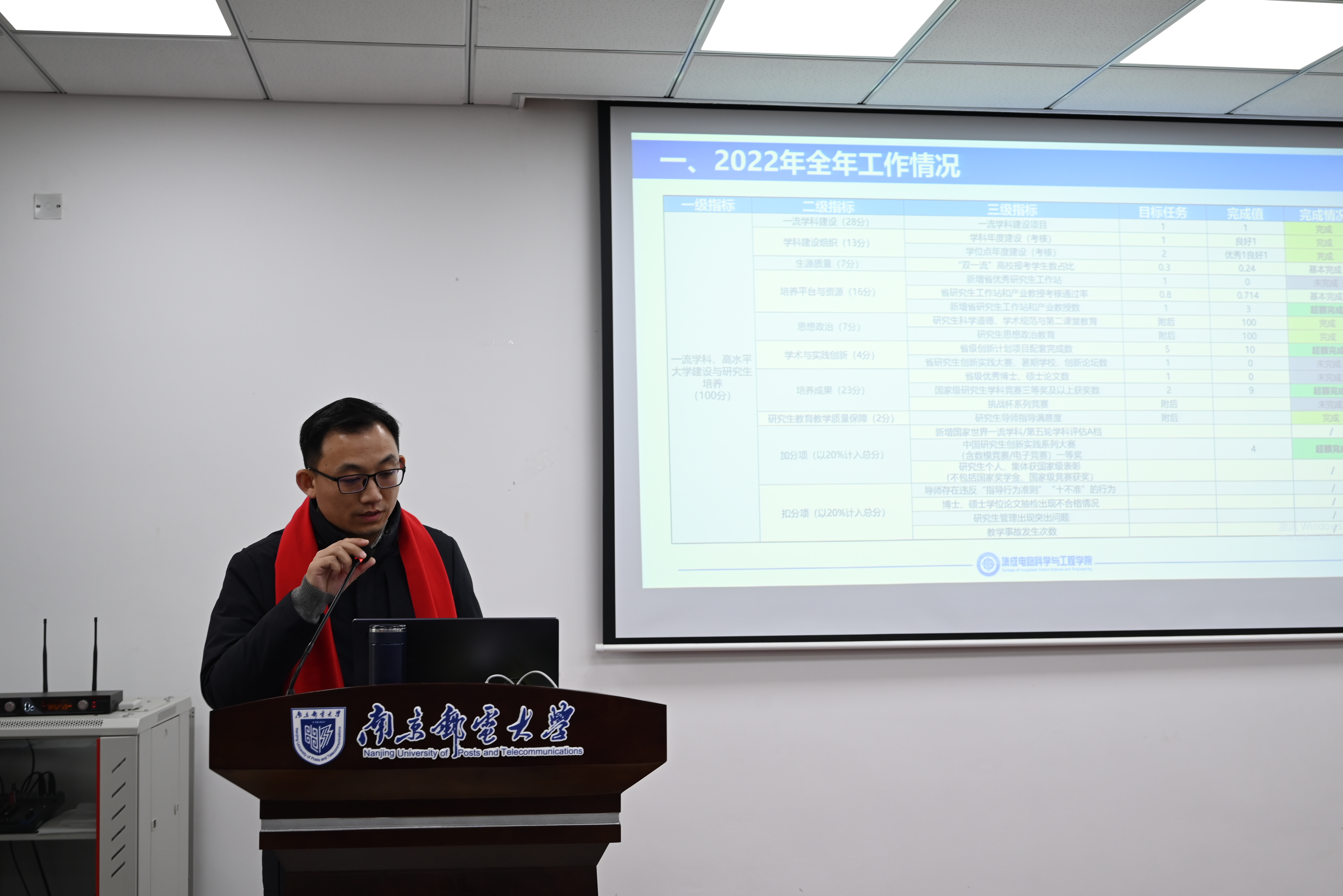 2月9日,集成电路科学与工程学院2023年全院大会暨2022年度述职大会在3号学科楼B322会议室线上和线下同时举行。校党委常委、副校长、学院院长郭宇锋,学院党委副书记乔祖琴,副院长蔡志匡,副院长肖建和全体教职工出席大会,学院党委书记高翔主持会议。