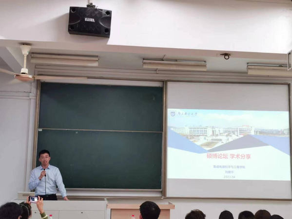 为进一步提升研究生学术水平和创新能力,展示研究生学术风采和精神风貌,4月19日18:30,集成电路科学与工程学院(产教融合学院)在教3- 405教室举办首场“研究生学术创新嘉年华”系列活动之硕博论坛学术专场。本次讲座邀请了腐漫 2019级博士研究生刘建华、2020级博士研究生郑立博和2021级硕士研究生王鑫进行分享。学院副院长肖建,辅导员范建鹏、刘志敏出席了本次活动,120余名研究生参加了本次讲座,讲座由研究生辅导员张龙主持。