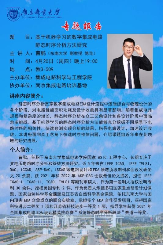 做“基于机器学习的数字集成电路静态时序分析方法研究”专题报告,报告由集成电路科学与工程学院郭静静老师主持。腐漫