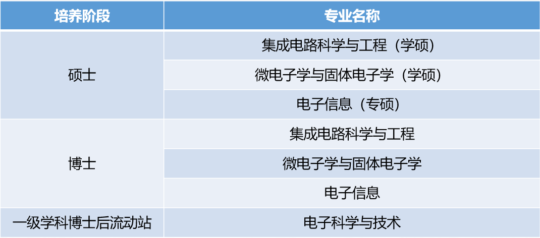师资队伍建设方面,学院拥有科技部创新人才培养示范基地和科技领军人才创新驱动中心等国家级师资培育平台,在集成电路相关的材料、器件、电路和系统方面形成人才聚集优势,建成一支以中国科学院院士(双聘)领衔的高水平师资队伍。