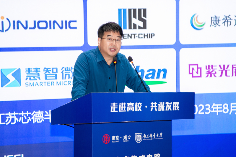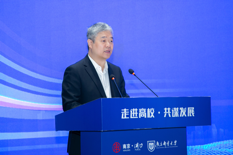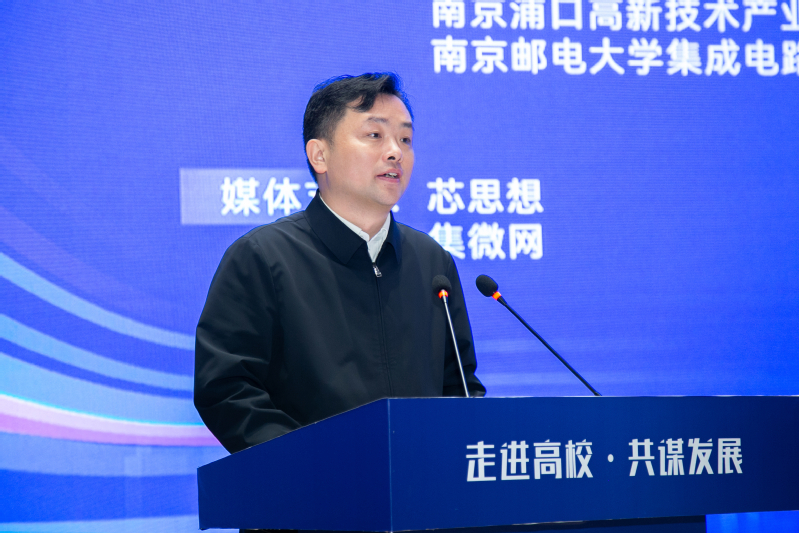 郭宇锋书记代表学校对与会的各位领导、嘉宾表示热烈欢迎。他说,南邮坚持走大信息特色发展之路,构建了“信息材料、信息器件、信息系统、信息网络、信息应用”五位一体的大信息发展格局,在新一代移动通信、集成电路与微组装、有机电子与信息显示等研究领域培育了一大批重要科技创新成果。近年来,学校充分发挥电子信息特色优势,大力推动集成电路校地融合发展,提升科技创新水平和社会服务能力,与地方政府、企业共建了众多校地研究院、专利培育中心和创新平台。今年3月,学校与浦口区政府签约共建集成电路科学与工程学院(产教融合学院)和射频集成与微组装国家地方联合工程实验室浦口分实验室,努力构建支撑集成电路产业高速发展的人才培养体系,为南京集成电路产业建强人才储备库,助力南京打造成为具有国际影响力的“芯片之城”。
