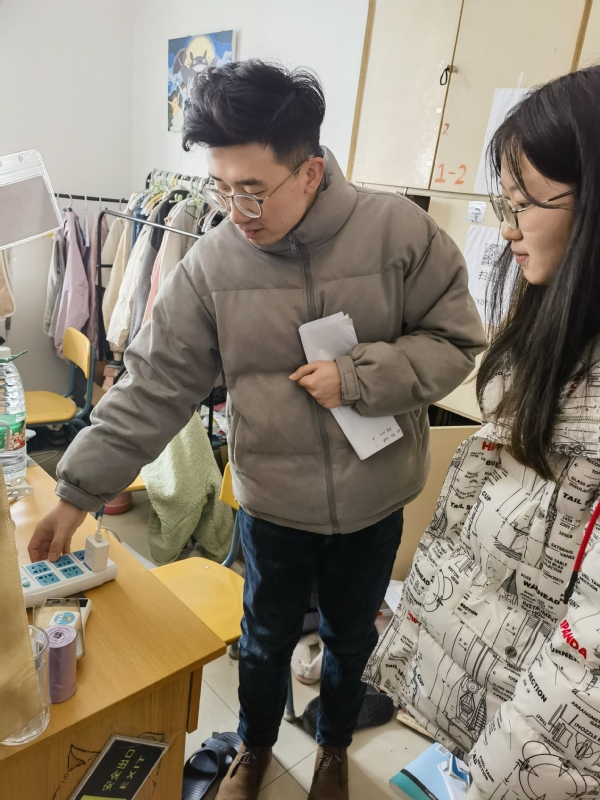 龙年启新程,新年新气象。新学期,为进一步加强学生安全防范意识,确保学生住宿安全、消防安全、财产安全,营造一个安全整洁的宿舍环境,3月1日,学院2020级辅导员范建鹏深入年级学生宿舍,开展新学期宿舍安全隐患大排查工作。