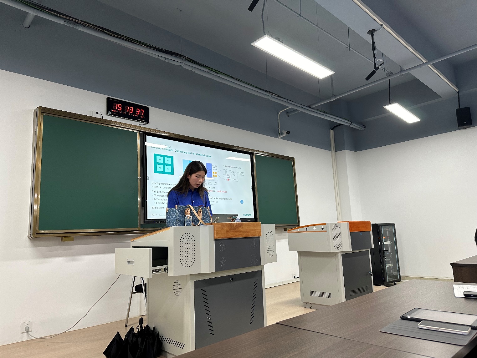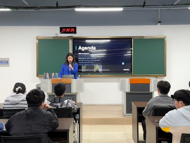 为提高学生科研能力,加强对集成电路产业工具的掌握,4月2日-3日,腐漫 集成电路科学与工程学院(产教融合学院)邀请西门子电子科技(上海)有限公司,在浦口办学点开展对集成电路Tessent工具的培训讲座,讲座由西门子EDA技术专家主讲,吸引了全院近30名学生到场聆听。