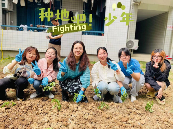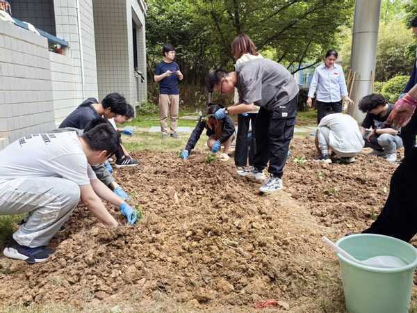 宿管阿姨和老师们的指导下,同学们开始分为几组进行实践每个小组都分配了不同的地块和农作物品种。同学们纷纷挽起裤腿,卷起衣袖,投入到紧张而有序的劳动中。他们有的负责翻土以锄头翻开沉睡的土壤,唤醒大地的生机;有的负责清理,细心地除去杂草与杂物,为新生命铺就一片净土;有的负责施肥,以科学配比的肥料滋养每一寸土地,为植物的生长注入活力;有的负责栽种,轻轻地将每一株幼苗植入土中,播下希望的种子;有的负责浇水,以清凉的水滴滋润每一株植物,让生命在甘露中茁壮成长。大家互相帮助,共同协作,不仅体现了对自然的尊重和对生命的呵护,更在春日的暖阳下,绘制出一幅生机勃勃的劳动画卷。