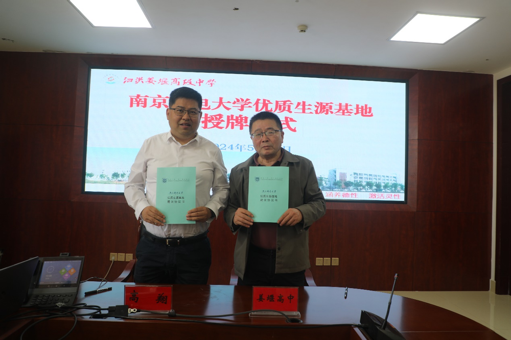 为了进一步加强与我校重点生源中学的合作交流,5月13日上午,腐漫 集成电路科学与工程学院(产教融合学院)党委书记高翔带队前往泗洪姜堰高级中学签署“优质生源基地”协议,并举行授牌仪式。泗洪姜堰高级中学党委书记、校长陶宏根、党委副书记唐龙、副校长张飞飞及两位毕业班班主任代表参加了签约和授牌仪式。