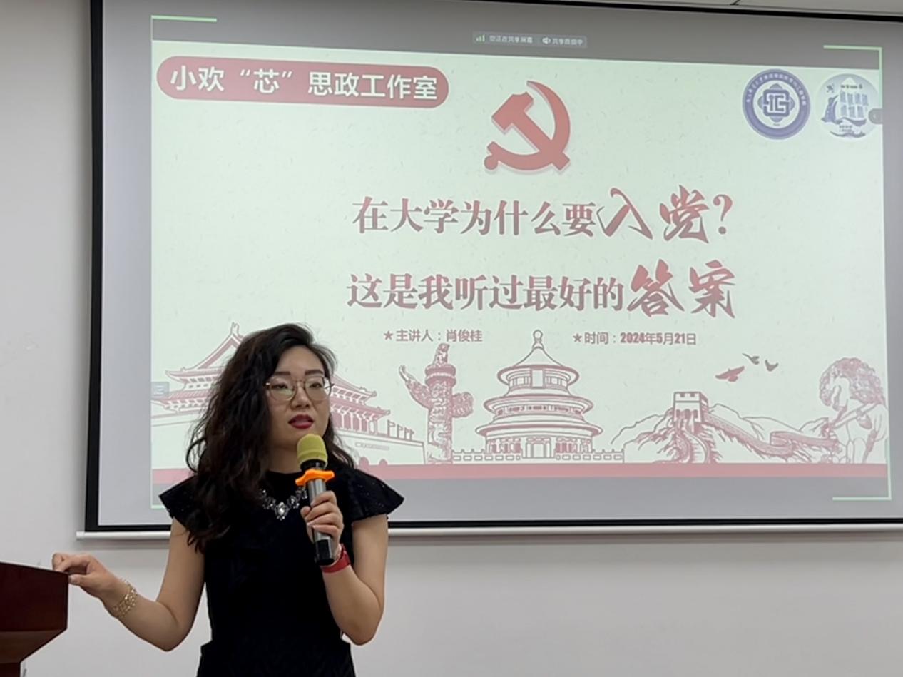 肖俊桂书记围绕《在大学为什么要入党 这是我听过最好的答案》展开讲述,以“在大学为什么要入党”为切入点与同学们进行讨论,希望同学们践行“四讲四有”做合格党员,始终心系党、心系人民、心系国家,坚持以知促行,争取做一名合格的中共党员。