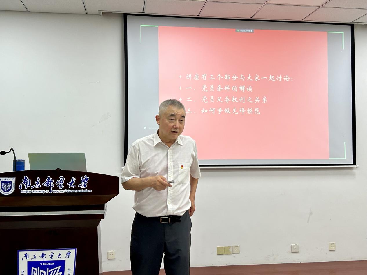王辉老师以《红色校史》为主题,向学员讲述了南邮红色校史,希望同学们,坚持和传承热爱祖国、矢志报国的家国情怀;艰苦奋斗、刻苦学习的优良学风;密切联系群众、服务群众的优良作风,继承和发扬南邮的红色基因。唐丽老师向学员详细介绍了党员发展的流程和注意事项。