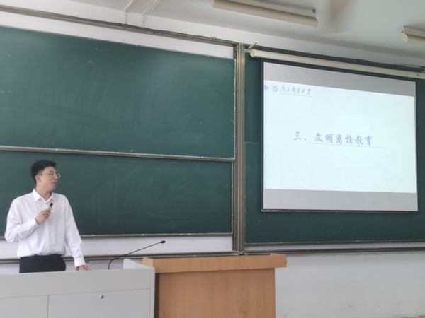 针对文明离校,范老师从“心怀感恩,情系母校”、“以身为范,文明离校”、“提高警惕,安全离校”三个主题,对毕业生宿舍卫生、人身财产安全、文明行为等提出了具体要求和建议,号召全体同学安全文明离校,以身作则,传递积极向上的精神风貌,为低年级同学树立榜样,共同营造文明和谐的离校氛围。