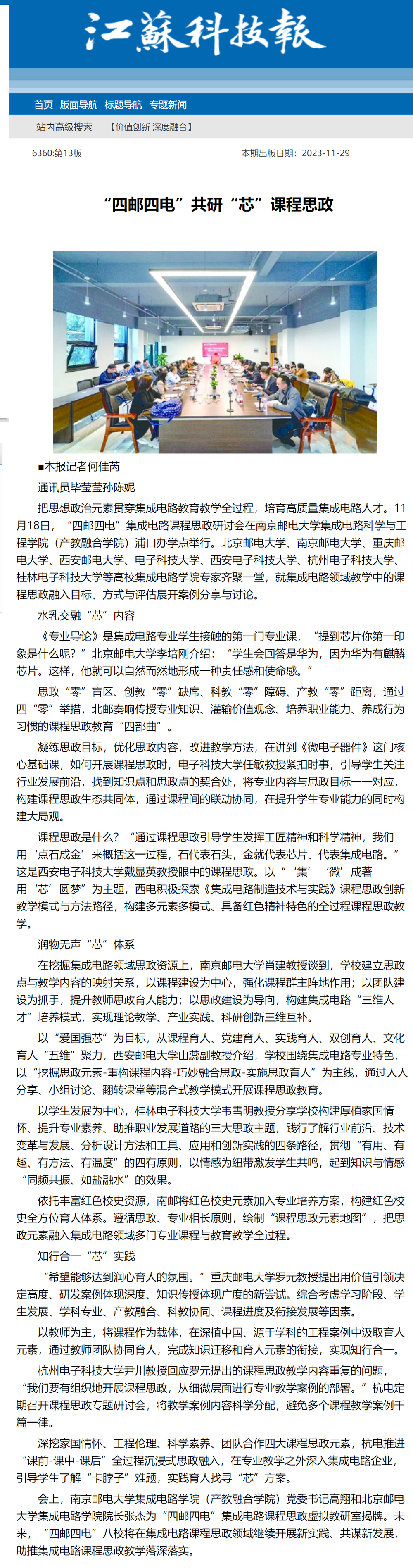 【江苏科技报】“四邮四电”共研“芯”课程思政