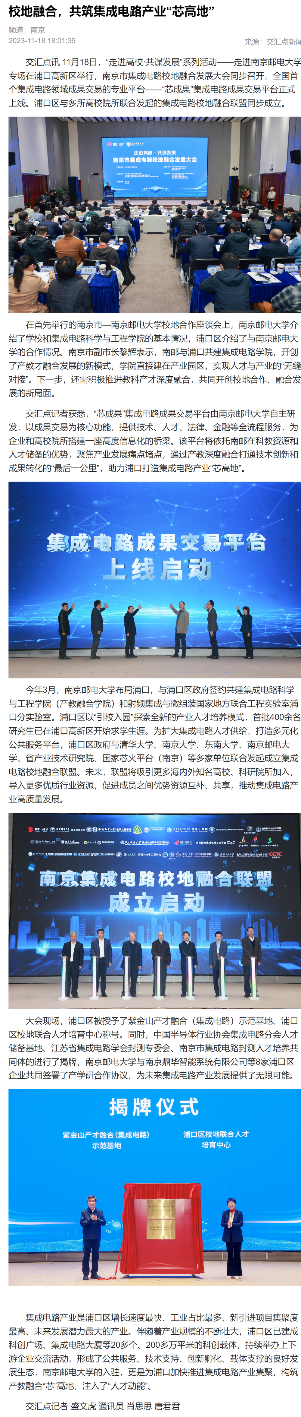 【新华日报客户端】校地融合,共筑集成电路产业“芯高地