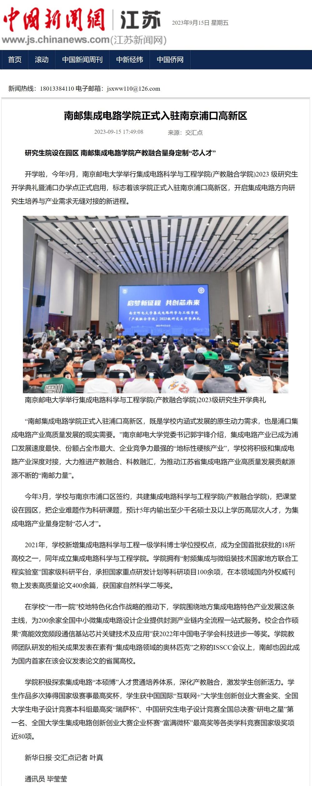 【中国新闻网】南邮腐漫 正式入驻南京浦口高新区