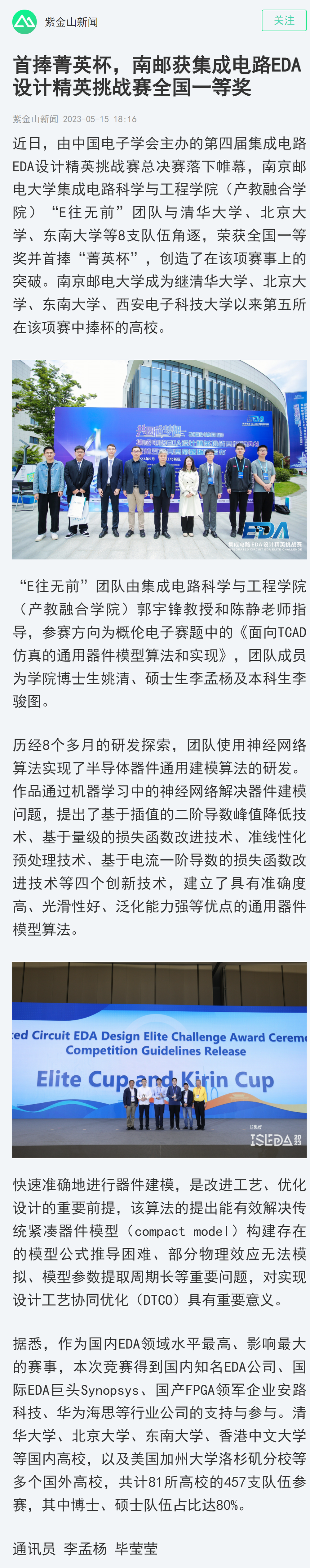 【南京日报客户端】首捧菁英杯,南邮获集成电路EDA设计精英挑战赛全国一等奖
