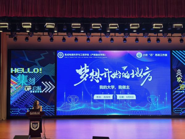 会议伊始,肖俊桂副书记向开启新征程的同学们表示热烈欢迎和祝贺,他表示,随着国家对高精尖战略领域和行业的大力推动,新时代社会发展对于高素质集成电路相关专业人才的需求日益增加,学院肩负着培养国家集成电路产业急需人才的重任,强校兴国,同学们责任在肩。
