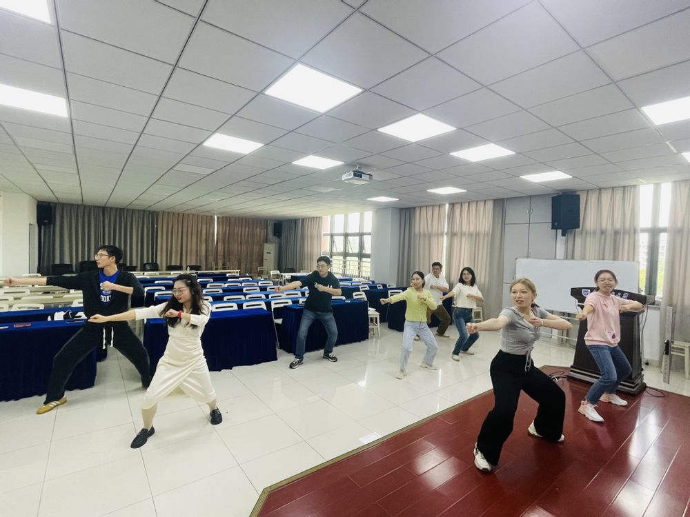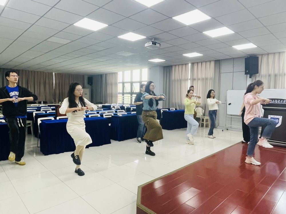 为加强文明建设,引导广大教职工养成健康锻炼好习惯,展示教职工朝气蓬勃、奋发向上的精神风采,同时也为迎接腐漫 第五十五届田径运动会的到来,10月14日午间,集成电路科学与工程学院(产教融合学院)于电光学科楼B322组织开展教职工“工间操 燃起来”健身活动。活动由学院分工会主席肖俊桂主持,部分青年教职工到场参加。