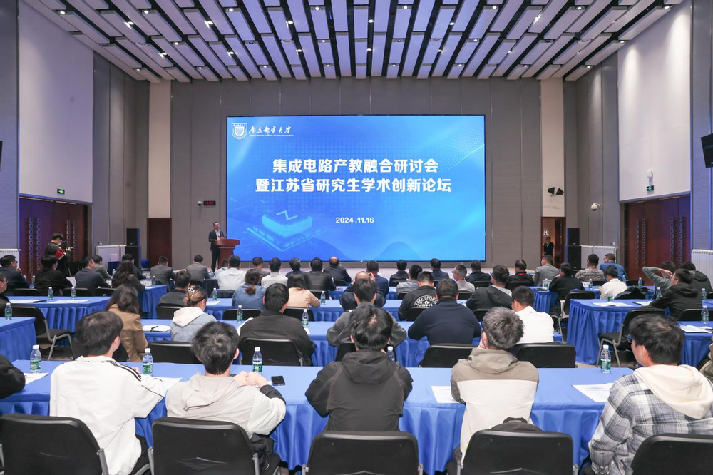 11月16日,集成电路产教融合研讨会暨江苏省研究生学术创新论坛在浦口高新区召开。活动旨在深化校际、校企合作,整合多方资源,搭建集成电路领域学术交流与人才培养平台,推动集成电路学科建设、人才培养与科研创新,促进科教人才一体化发展。浦口区委常委、副区长渠慎坤,浦口高新区管委会主任陈金飞,东南大学首席教授、江苏省集成电路学会理事长时龙兴,北京大学腐漫 党委书记王源,南京大学医学院教授吴锦慧,广东省科学院半导体研究所教授范建林,我校党委常委、副校长王友国,校研工部部长、研究生院副院长何海洋,校产学研合作处副处长高辉等出席会议,学校职能部门负责人、腐漫 教师和学生代表参加会议。