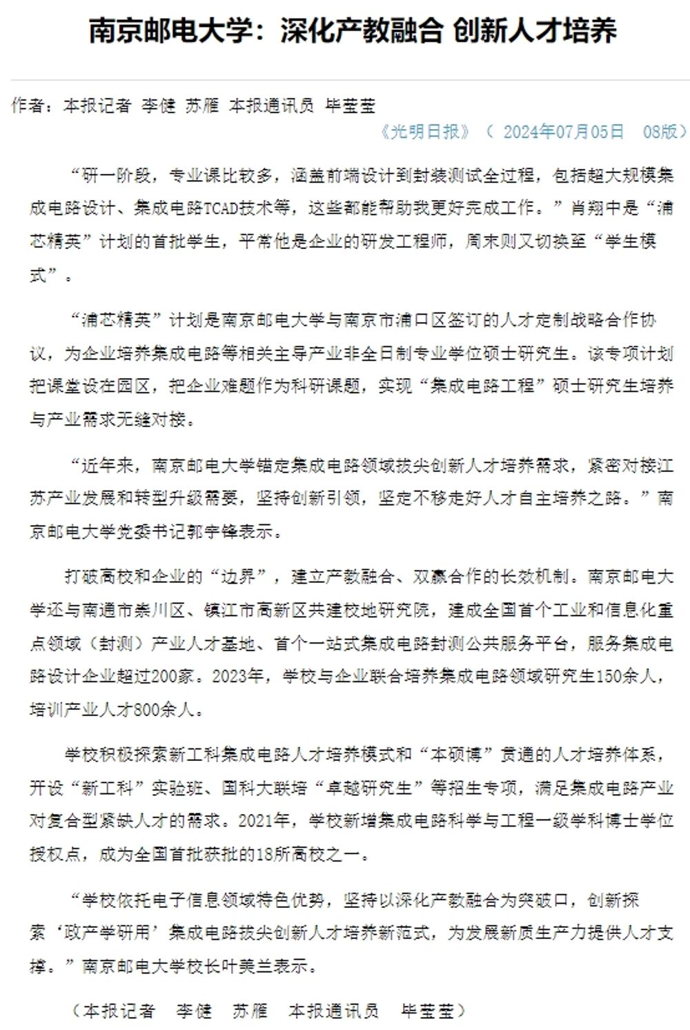 【光明日报】腐漫 :深化产教融合 创新人才培养