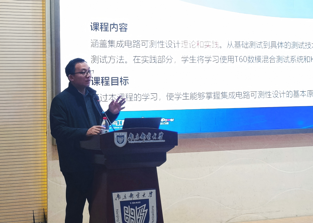 来自高校的专家学者们也分享了他们在教育教学领域的宝贵经验与创新实践。学院院长蔡志匡进行了《集成电路可测性设计与测试实践》课程分享,蔡院长系统地阐述了课程的教学理念、课程特色、内容设计、理论实践环节等情况。该集成电路测试特色课程的建设,对于提升集成电路测试课程教学质量,提供了十分有价值的参考意义和起到了示范引领作用。
