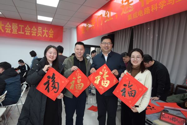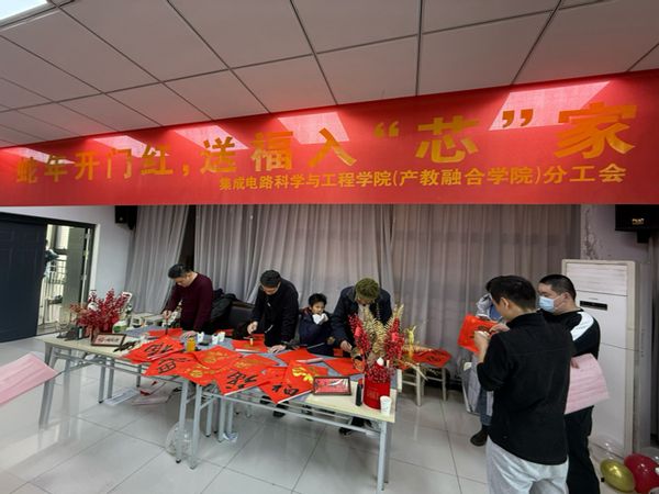 为进一步弘扬中华优秀传统文化,营造浓厚的节日氛围,集成电路科学与工程学院(产教融合学院)分工会于1月9日组织开展了一场别开生面的“蛇年开门红,送福入‘芯’家”活动。学院领导班子悉数到场,85名教职员工积极参与。活动还特别邀请了关工委成谢锋教授、南京鼓楼区书法家协会理事、南邮教职工书画协会会长、校对外联络处贾昊鑫老师、校团委科创实践部郭亚洲老师为与会教职工送上亲自书写的祝福。