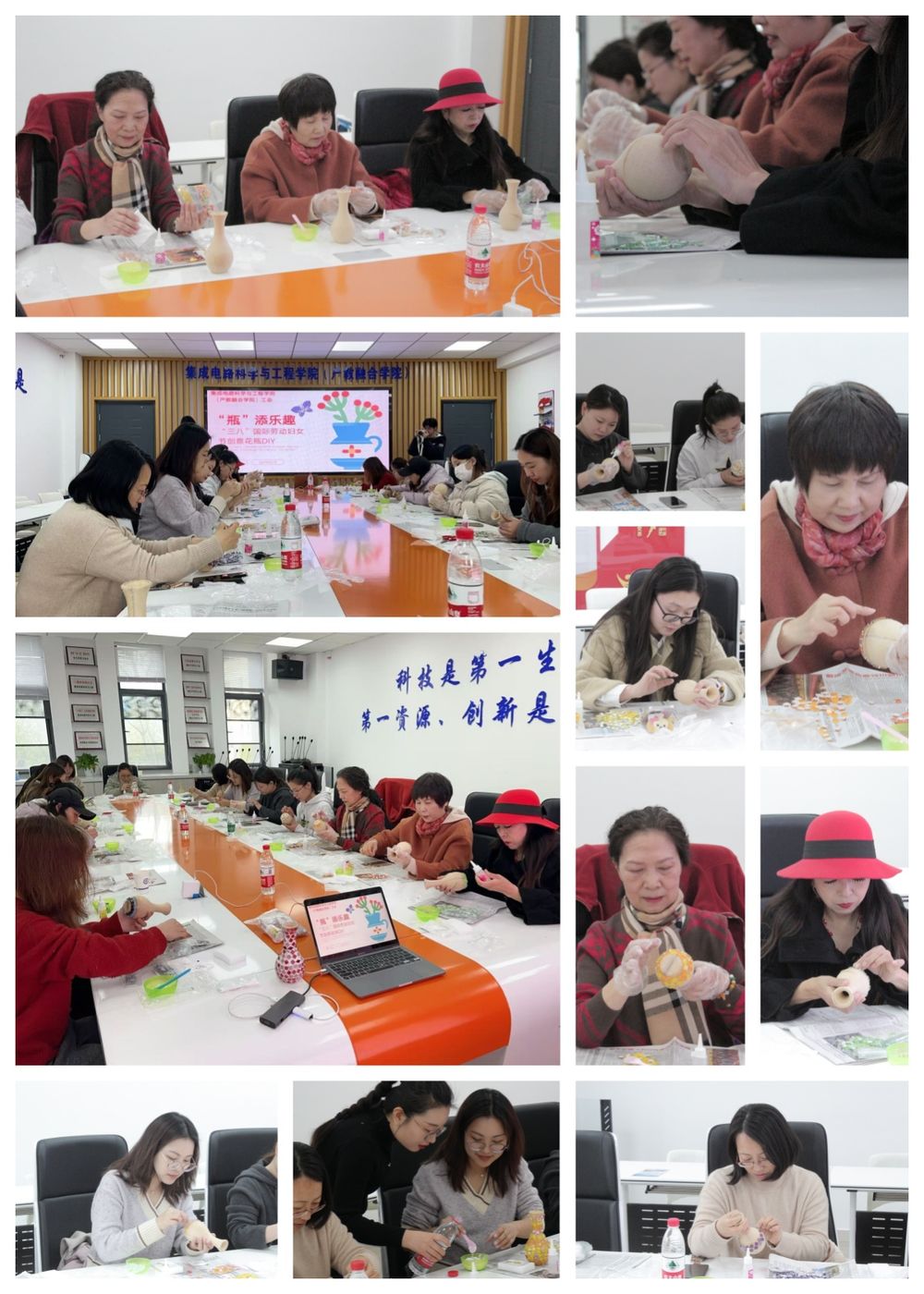 在柔和的灯光下,大家化身“艺术家”,将玻璃瓶、马赛克、贝壳等材料巧妙组合。有的作品清新淡雅,仿佛春日里的一缕微风;有的作品绚丽多彩,宛如夏日的繁花盛景。每一件作品都承载着她们的巧思与心意,展现了女性独有的细腻与创造力。活动现场,欢声笑语交织,温馨氛围弥漫,大家互相欣赏作品,分享创作心得,其乐融融。