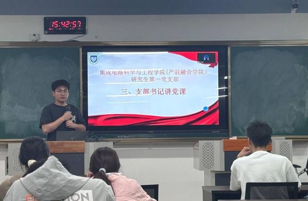 为深入学习习近平总书记关于加强党的作风建设的重要论述和中央八项规定及其实施细则精神,扎实推进深入贯彻中央八项规定精神学习教育各项任务,提升支部全体党员党性修养,强化党员理想信念,集成电路科学与工程学院(产教融合学院)研究生第一党支部于2025年4月24日下午3点在浦口办学点7号楼305室开展了“凝初心、正风纪、铸党魂、担使命”学习教育活动。