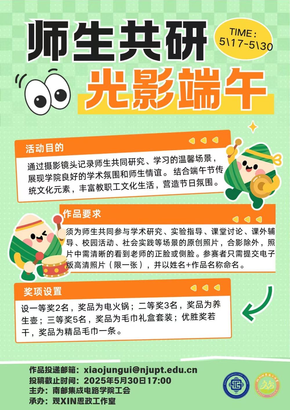 为弘扬中华优秀传统文化,促进师生交流,集成电路科学与工程学院(产教融合学院)工会于2025年端午节前夕举办了“师生共研,光影端午”主题摄影大赛。活动得到全院教职工的积极响应,共征集作品50余幅。