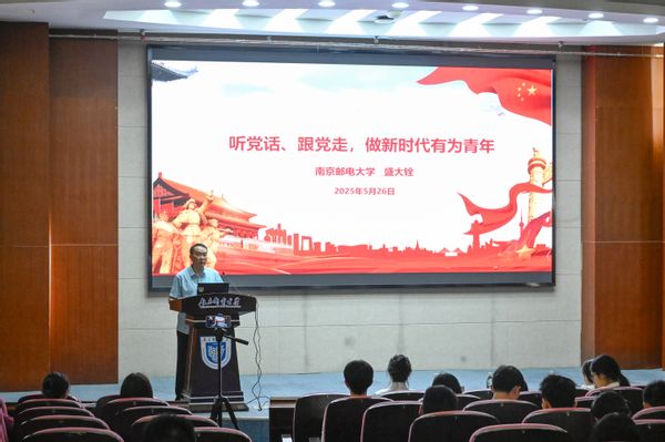 随后,校关工委盛大铨老师以《听党话跟党走做新时代有为青年》为主题,进行授课。盛老师从新时代是当代大学生的成长沃土和当代大学生要做新时代有为青年两大部分展开课堂,通过详实的数据,生动的案例,朴实的语言,讲述了新时代开辟了马克思主义中国化新境界,推进中华民族伟大复兴的历史节点,提出了加强党的全面领导,坚定不移推进从严治党的具体要求,当代大学生要有理想,有志气,敢担当,肯奋斗的殷切期待。