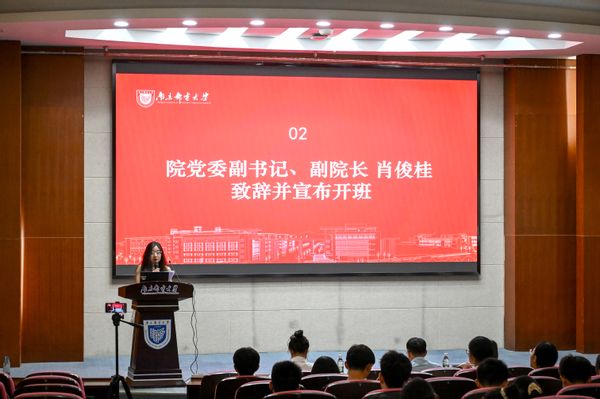 院党委副书记、副院长肖俊桂,校关工委盛大铨,学院组织员徐婕出席大会,全体学员到场参会,大会由院分团委书记王宸文姬主持。