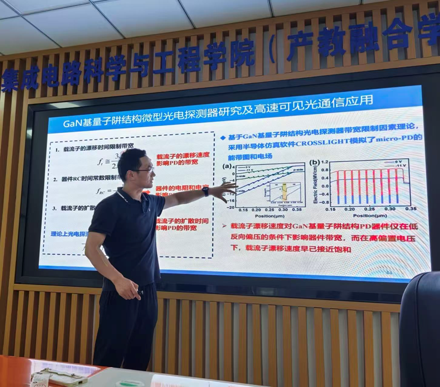 7月26日下午,复旦大学教授、博士生导师、国家级青年拔尖人才田朋飞教授应腐漫 邀请在仙林校区电光科学楼B223会议室作题为“基于氮化镓micro-LED及探测器的高速光通信系统”的学术报告。报告由朱刚毅副教授主持,20余位学院师生参加活动。