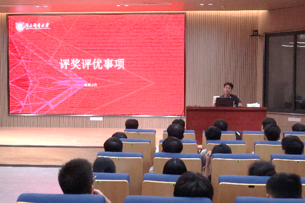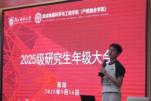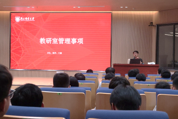 9月16日,为帮助252名新生坚定理想信念、明确学业方向、适应浦口办学点生活,2025级研究生年级大会于浦口办学点1号楼报告厅隆重召开,研究生辅导员张龙老师与全体研究生新生齐聚一堂,大会围绕园区生活、规章制度、成长发展等核心议题展开全面讲解,为新生开启研究生生涯筑牢基础。