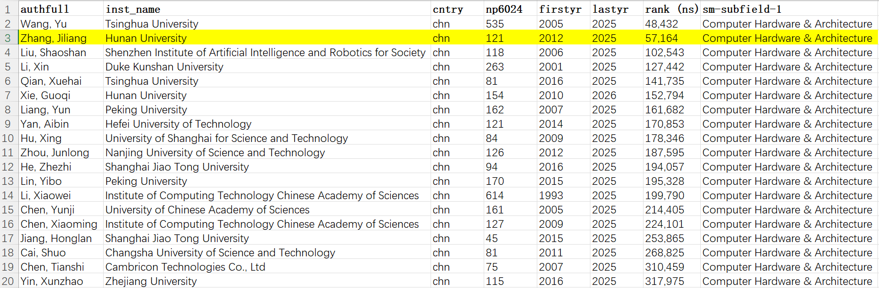 图3计算机硬件与体系结构学科中国学者终身科学影响力榜单(不含港澳台)