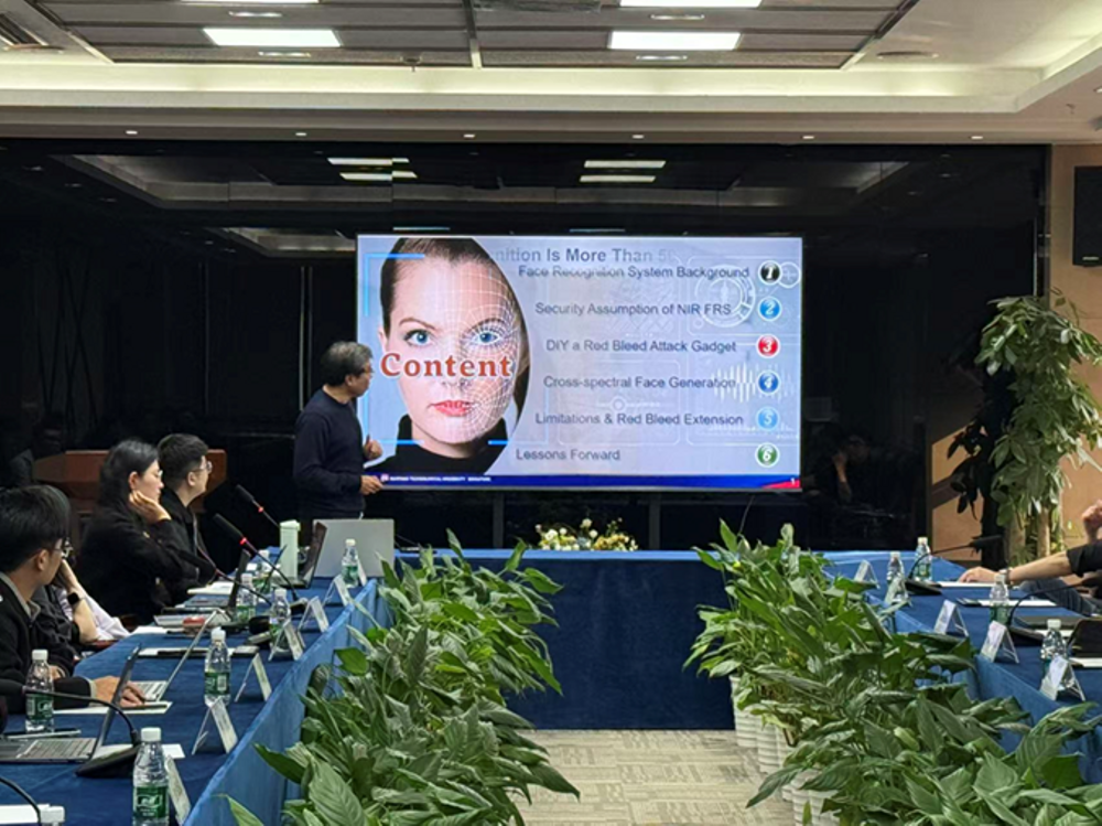随后,Chip Hong Chang教授的报告聚焦名为 “Red Bleed” 的新型攻击手段,揭示了商用近红外人脸识别系统存在的重大安全漏洞。后续相关研究团队借助低成本的自制设备,结合变分自编码器构建的跨光谱生成框架与先进换脸技术,完成修复。